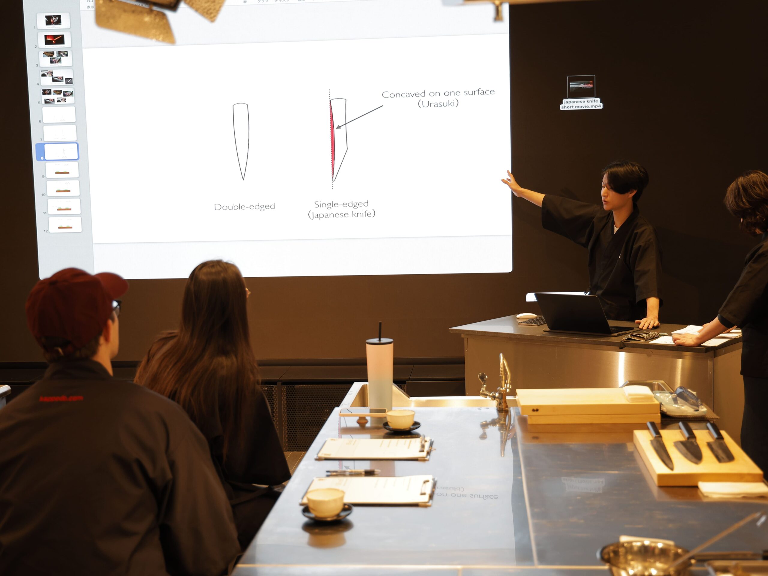 In this class, We open our course about "getting to know Japanese knives deeply with your own trial ". How it’s made? What’s the difference of Western knife? Why there’s single-edged and double-edged knife? etc.